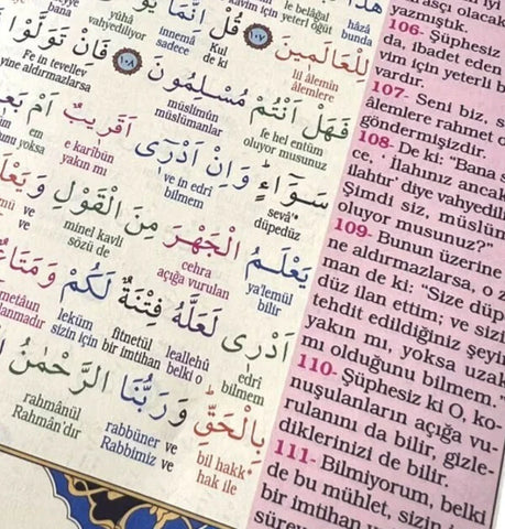 Arapça yazılı ve Türkçe meallidir.