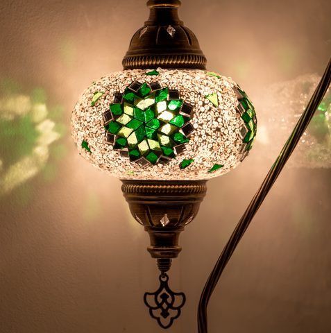 Her lamba, yüksek kaliteli renkli mozaik camlar ve paslanmaz bronz malzemeden üretilmiştir. El yapımı ve elle kesilmiş muhteşem cam parçaları ve mozaik boncuklar tek tek işlenerek her mozaik lambamızın birer eşsiz olmasını sağlar. Otantik tarzda bronz ayak, renk değiştirmez.